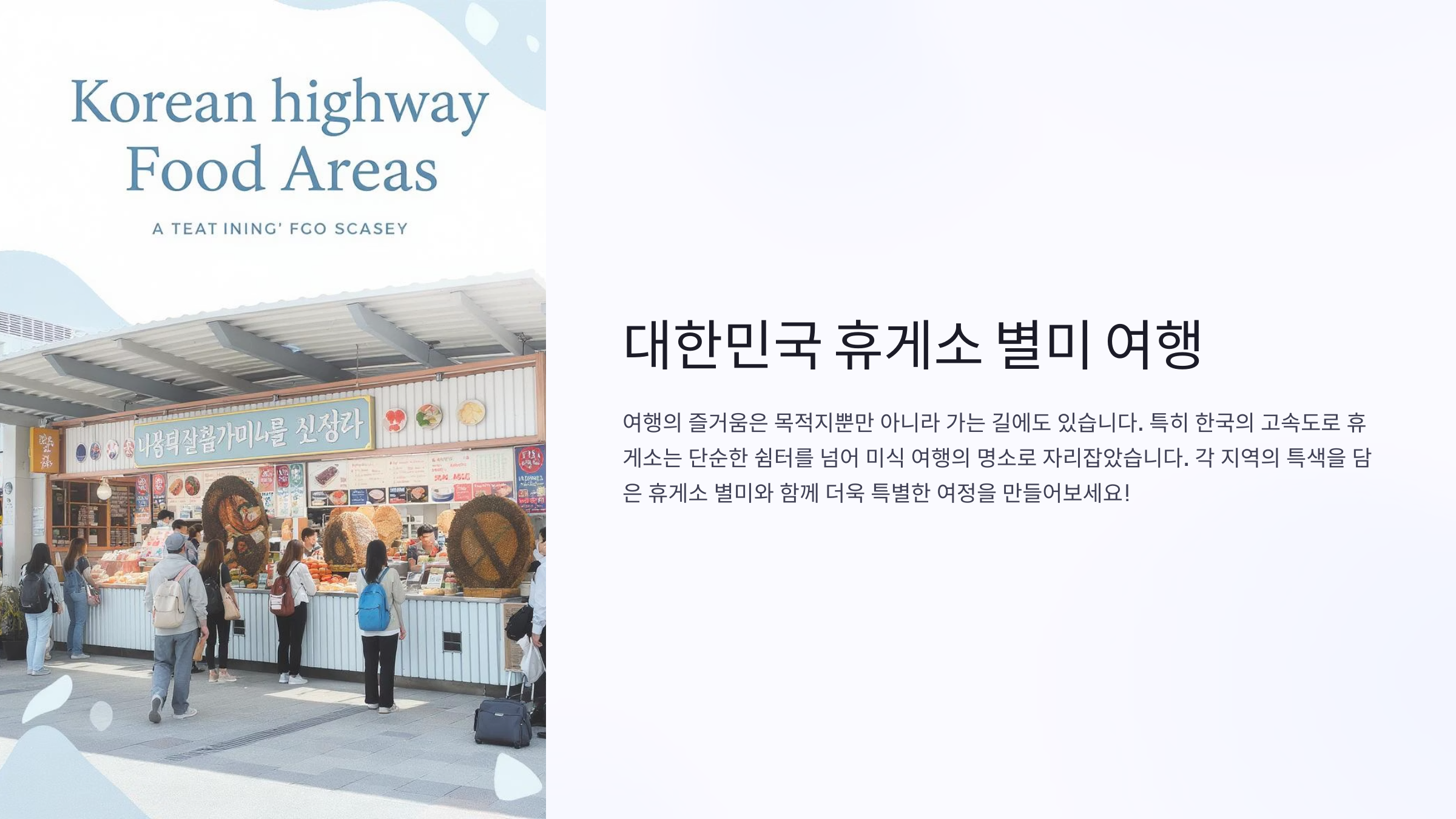 고속도로 위의 작은 여행, 바로 휴게소에서 시작됩니다! 장거리 운전의 피로를 달래주는 든든한 한 끼, 전국 각지의 별미가 모인 고속도로 휴게소는 이제 ‘맛집’이라 불려도 손색이 없습니다. 호두과자, 소떡소떡 같은 국민 간식부터, 지역 특산물로 만든 한정 메뉴까지—휴게소 음식은 그 자체로 여행의 또 다른 즐거움이죠. 오늘은 2025년 기준, 전국 고속도로에서 꼭 먹어봐야 할 휴게소 별미와 맛집을 한눈에 정리해드립니다.