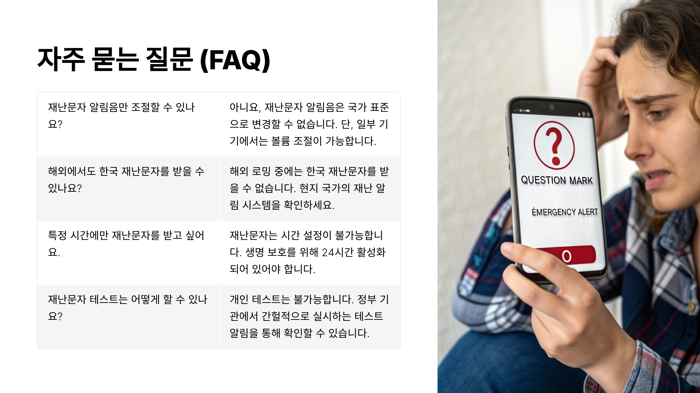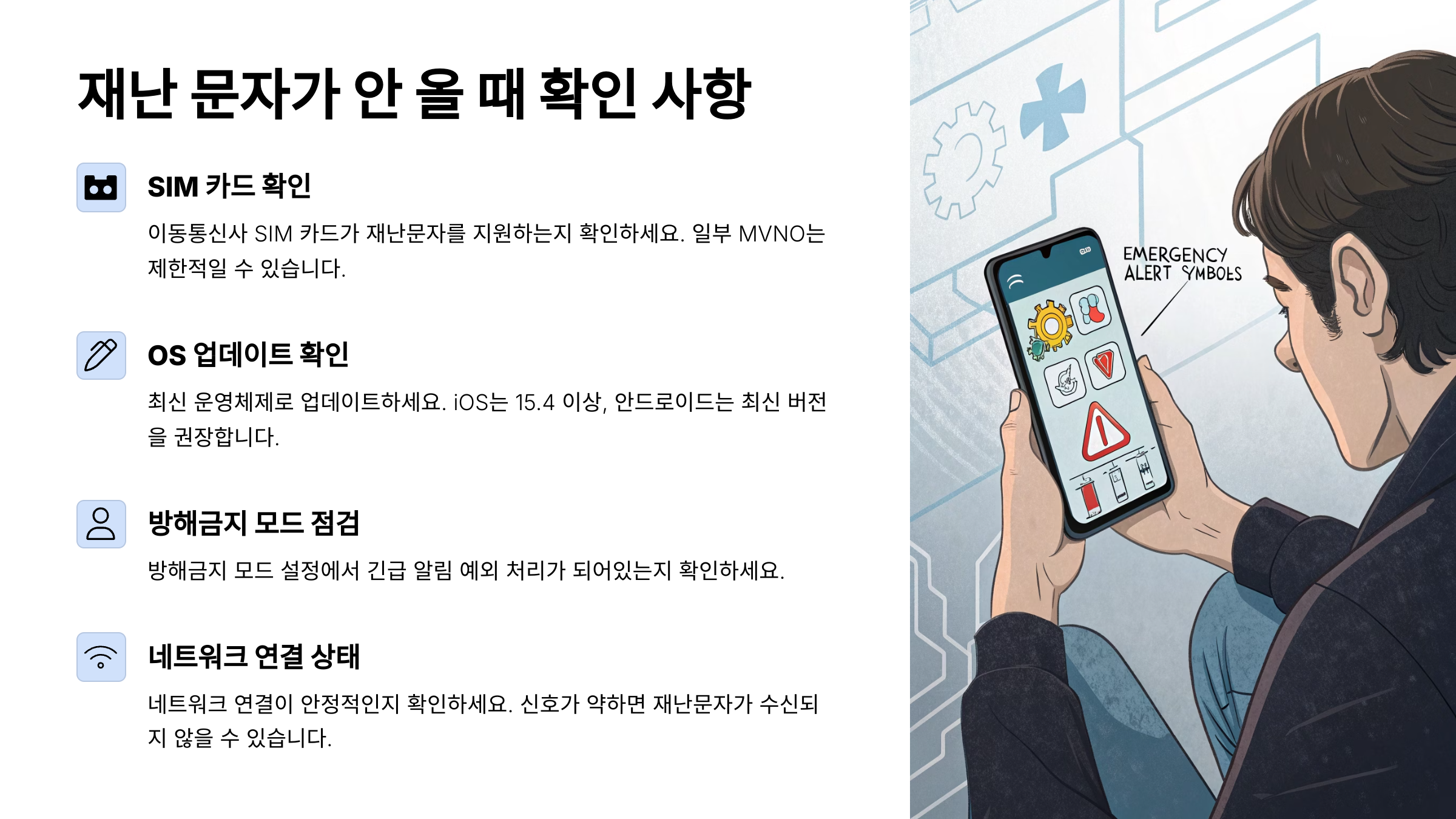 - 수신 설정 재확인: 모든 종류의 재난 문자(특히 안전안내문자)가 켜져 있는지 다시 한번 확인합니다.