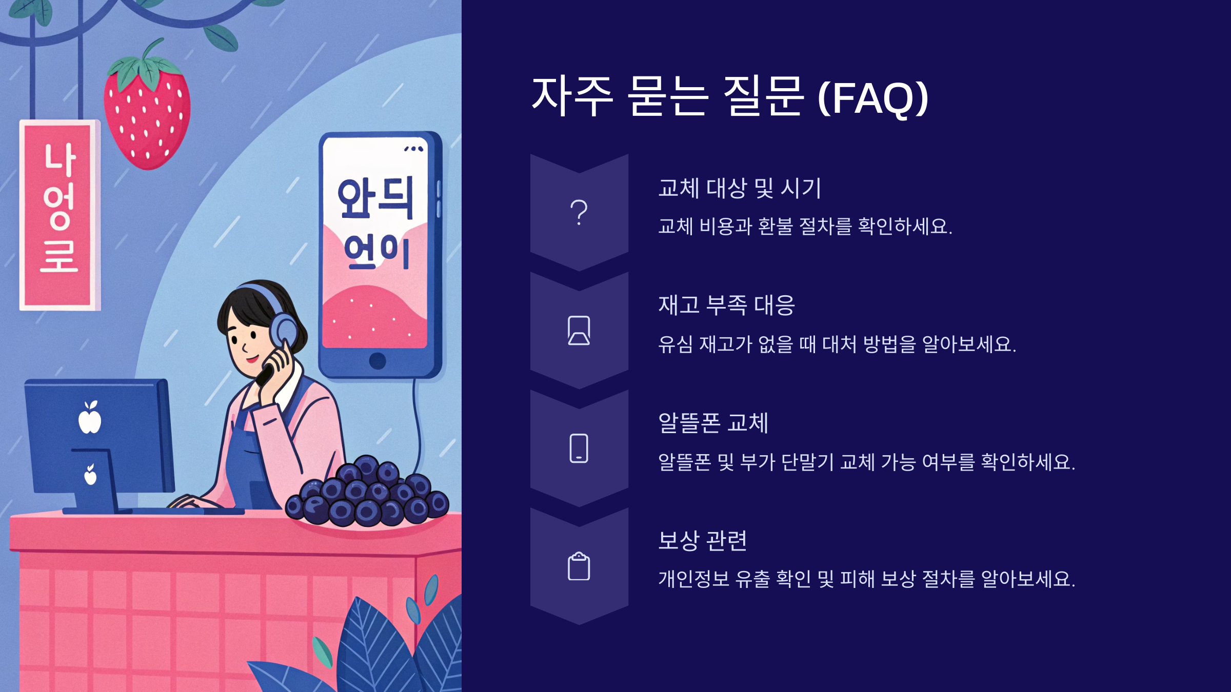 - 📜 교체 관련 서류 확인: 유심 교체 신청서 등 작성해야 하는 서류가 있다면 내용을 꼼꼼히 확인하고 서명하세요. 특히 비용 발생 여부(무상 교체 대상인지 등)를 다시 한번 확인하는 것이 좋습니다.