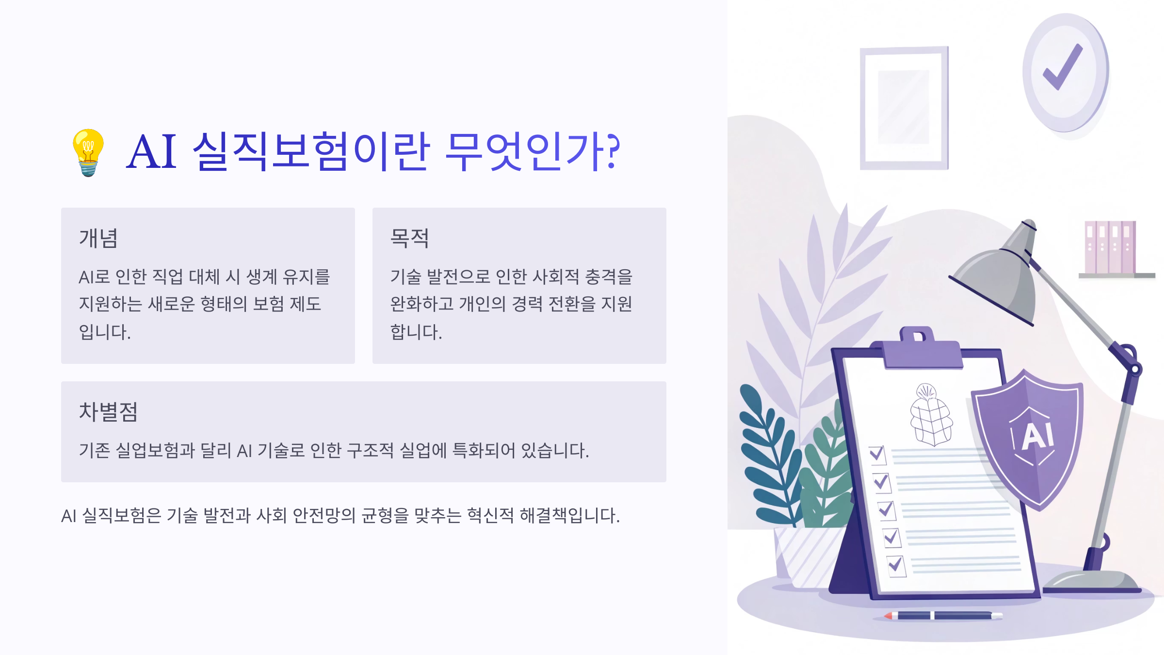 자, 그럼 AI 시대의 새로운 안전장치, AI 실직보험에 대해 알아볼까요? 👇