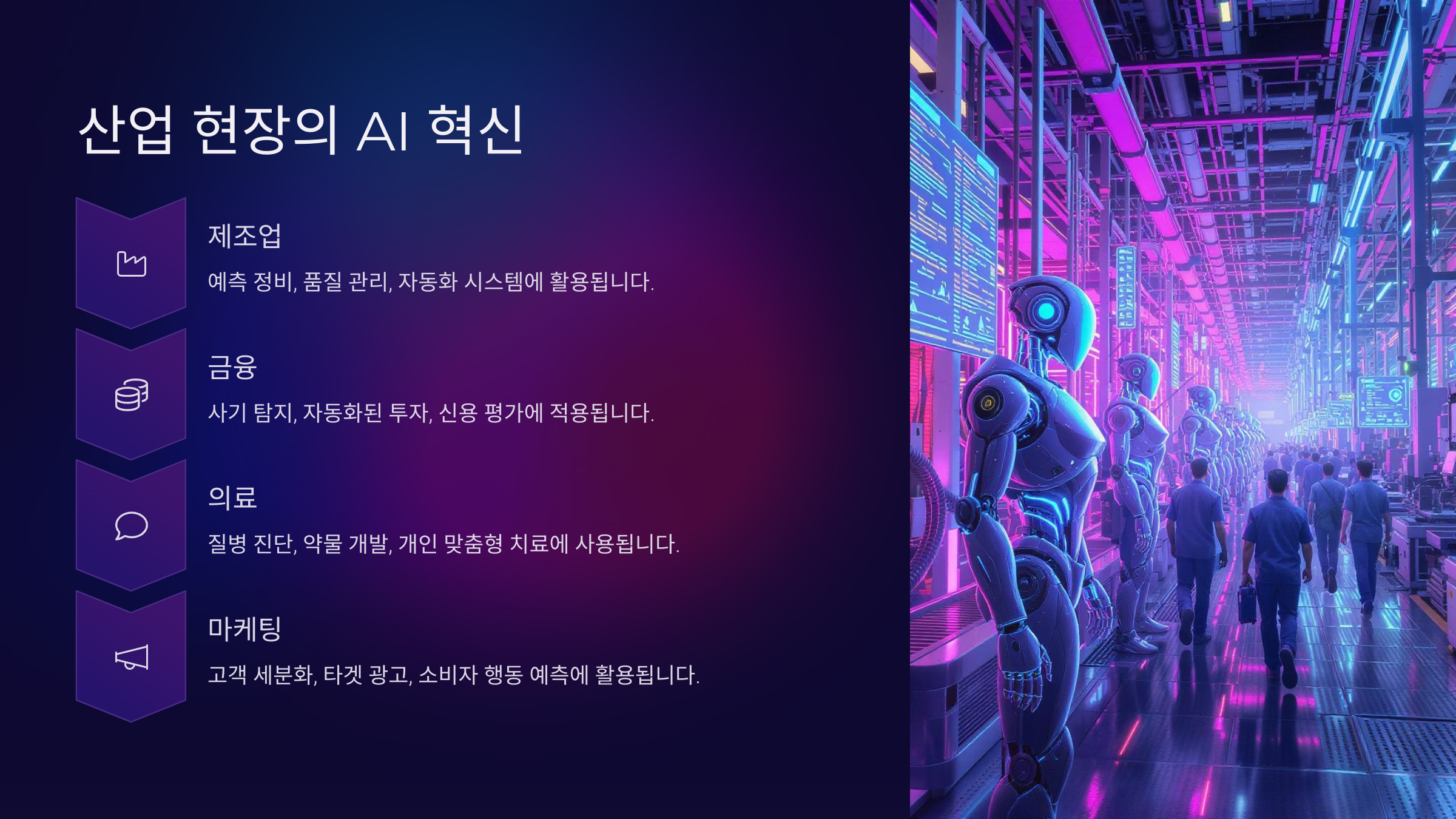 2. 산업 현장의 혁신 (제조, 금융, 의료, 마케팅 등) 🏭💹🩺