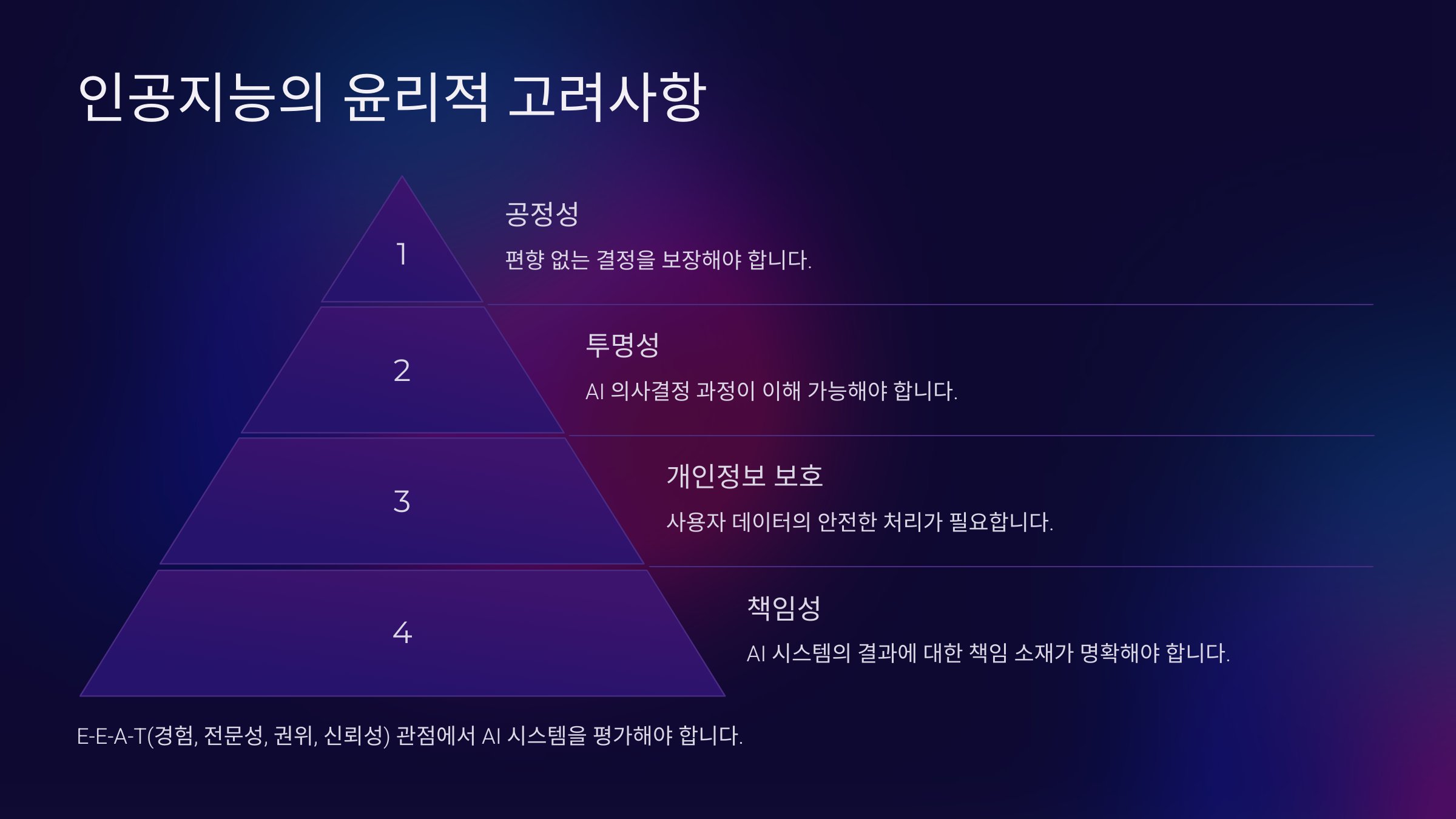 AI와 머신러닝 기술의 눈부신 발전과 함께, 우리는 다음과 같은 윤리적 문제들에 대해서도 깊이 고민해야 합니다. (이는 기술의 책임감 있는 사용을 위한 E-E-A-T의 중요한 부분입니다.)