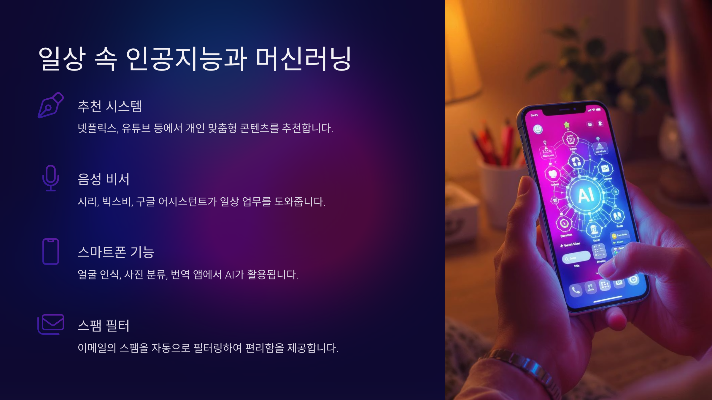 1. 우리 일상 속 AI & 머신러닝 (추천 시스템, 음성 비서 등) 🛍️🗣️