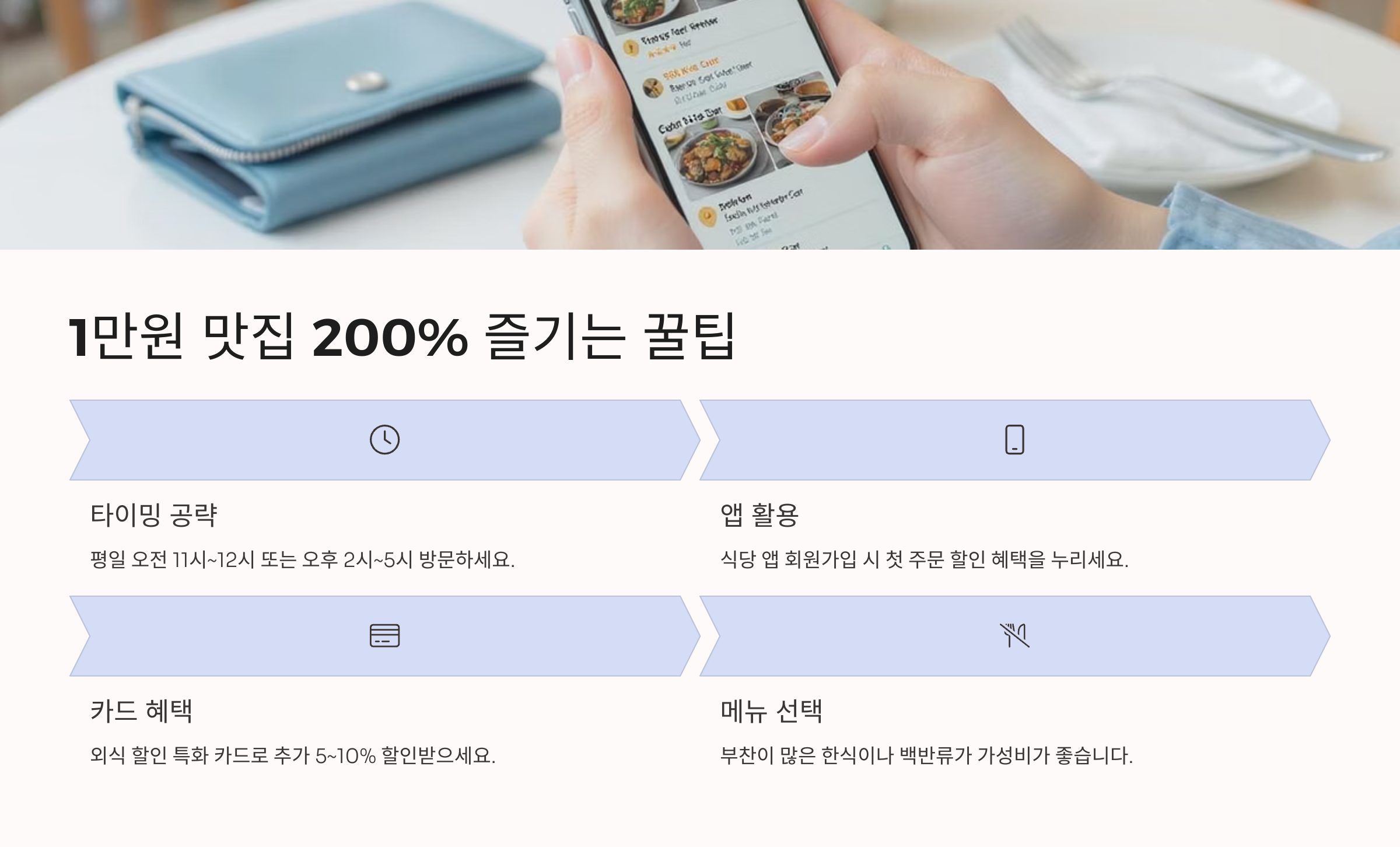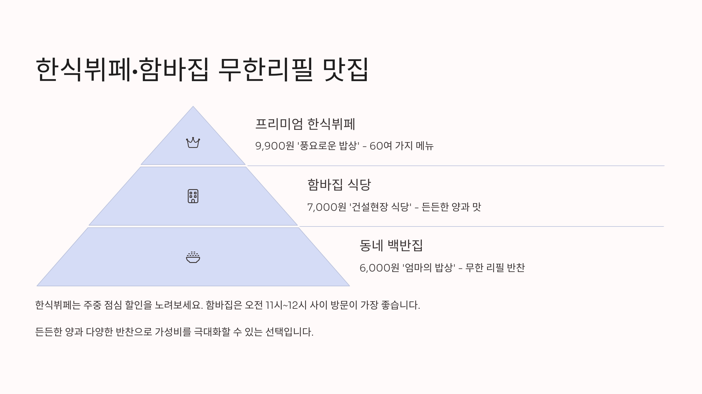 | 💸 지갑은 가볍게, 입은 즐겁게! '가성비 식당' 찾는 현실 꿀팁 7가지 (맛집헌터 비법) (0) | 2025.06.20 |