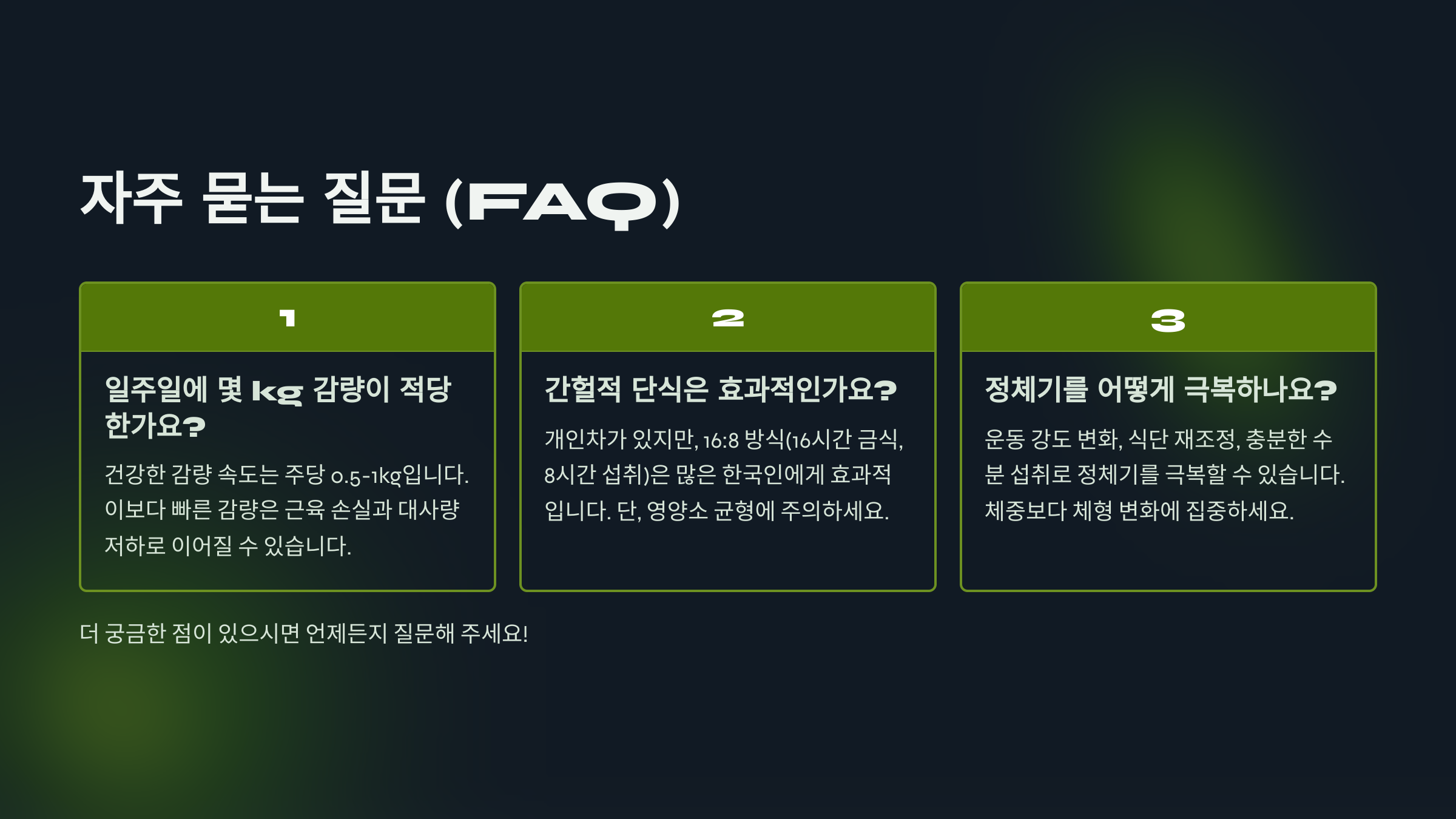 이처럼 성공적인 다이어트는 단순한 체중 감량을 넘어, 건강한 라이프스타일을 구축하는 과정임을 기억하세요. 위에 제시된 전략들을 바탕으로 자신에게 맞는 지속 가능한 다이어트 여정을 시작하시길 바랍니다. 여러분도 충분히 성공할 수 있습니다! 🚀