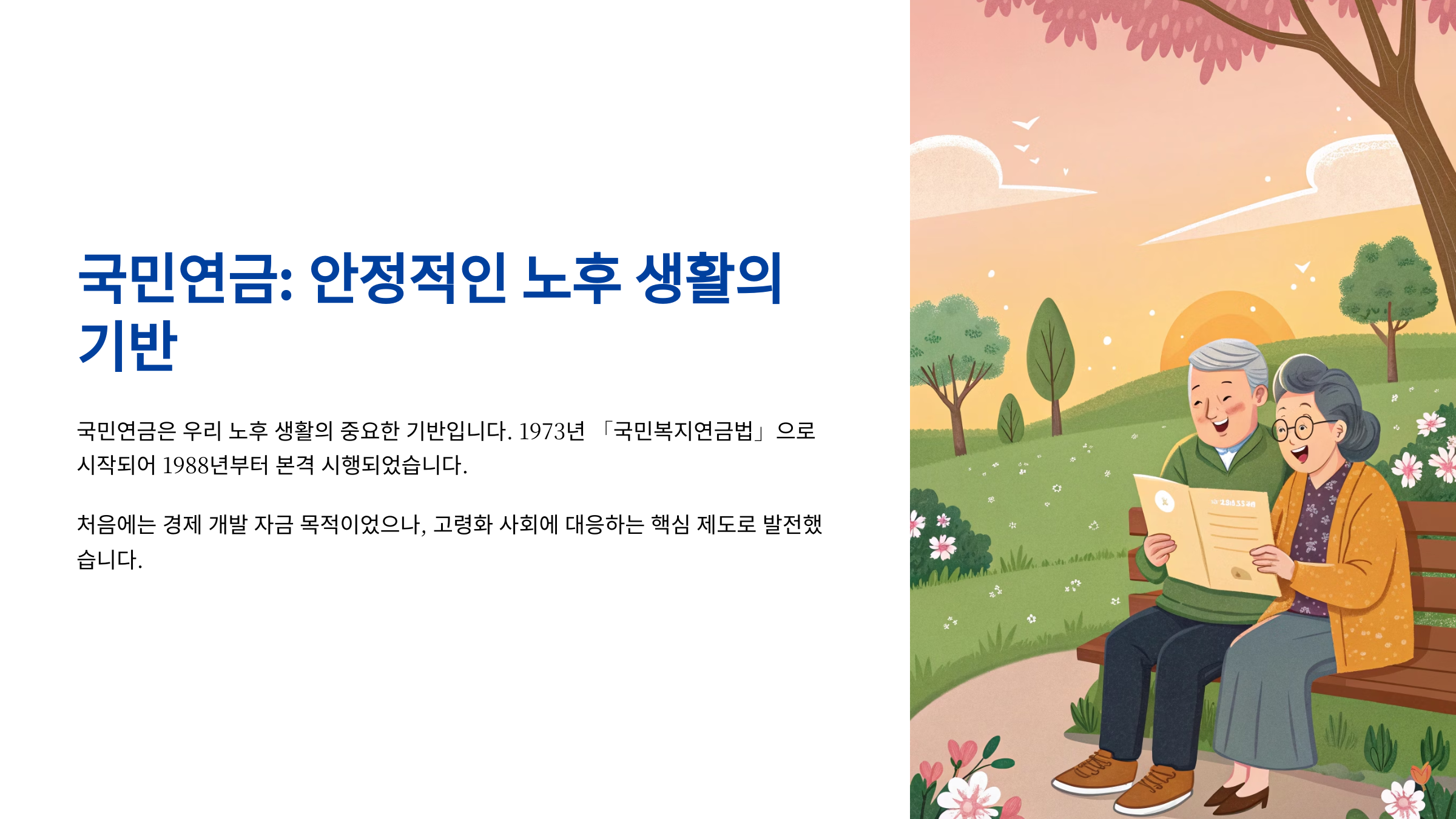 이 제도의 탄생 배경에는 고령 인구 증가에 따른 사회적 부담을 줄이고, 안정적인 노후 생활을 보장하려는 국가의 고민이 있었어요. 과거에는 가족 부양이 일반적이었지만, 핵가족화가 진행되면서 국가가 대신 연금제도를 통해 노후를 책임지는 구조로 전환된 거예요.