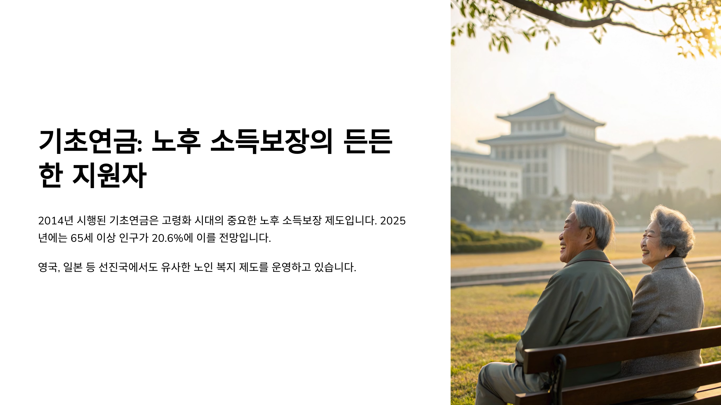 대한민국은 고령화 사회로 빠르게 진입하면서, 소득이 없는 어르신들이 생계를 유지하는 데 어려움을 겪는 경우가 많아졌어요. 그래서 2014년부터 본격적으로 시행된 제도가 바로 기초연금이에요.