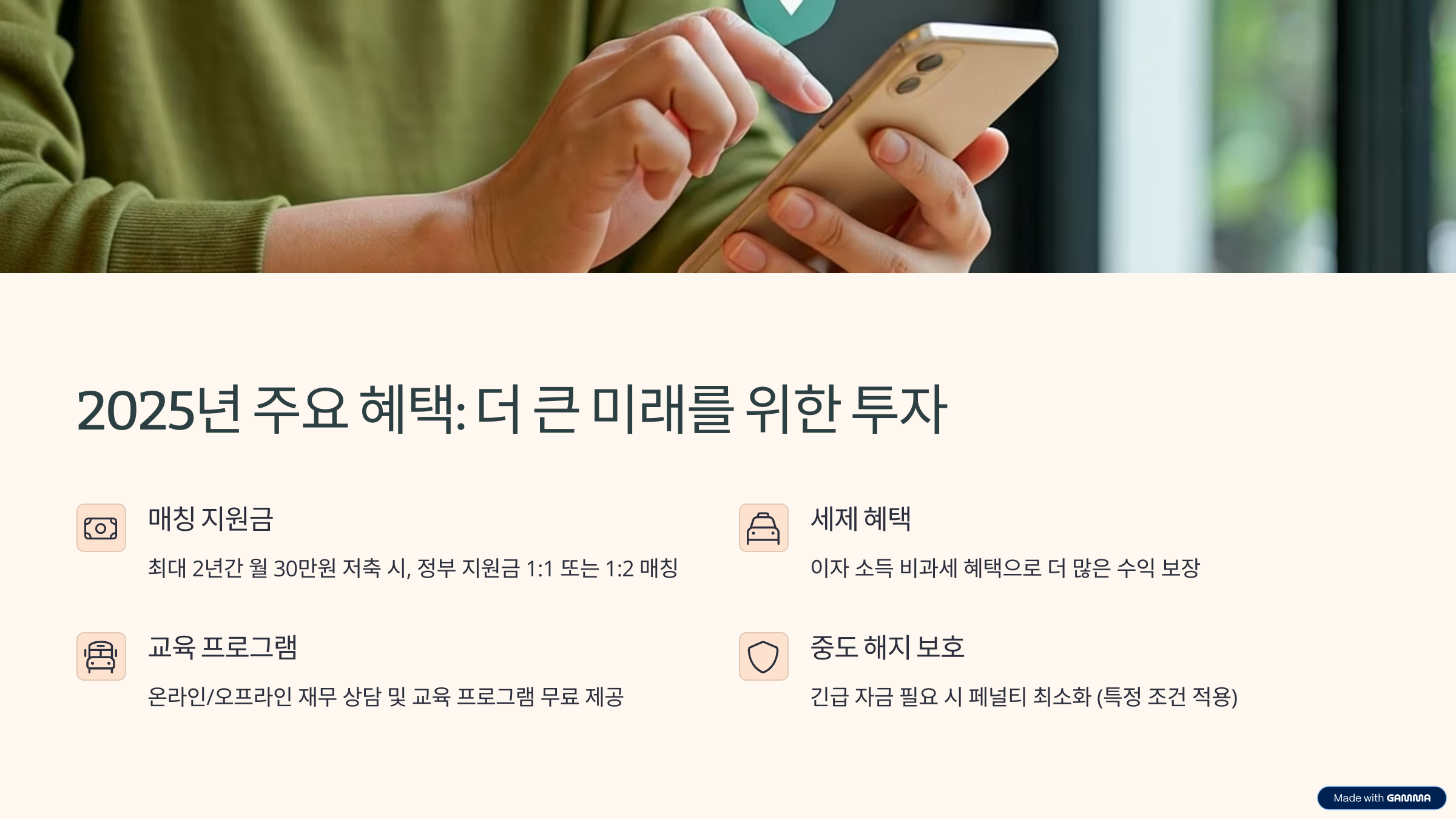 🎯 2025년 청년 지원 통장의 주요 혜택