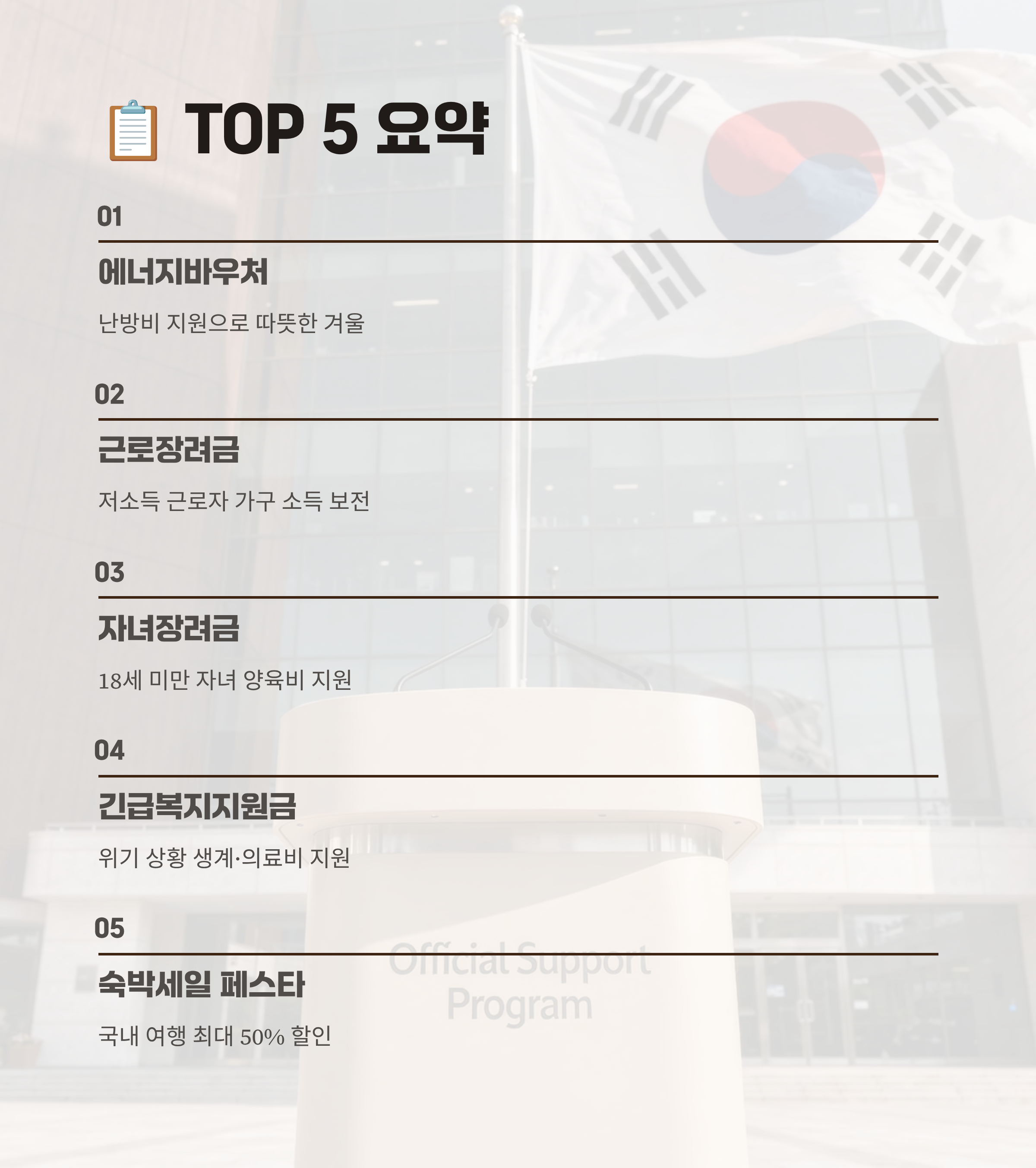 👇 마지막으로 2025년 12월 주요 정부지원 TOP 5를 요약해 드립니다.
