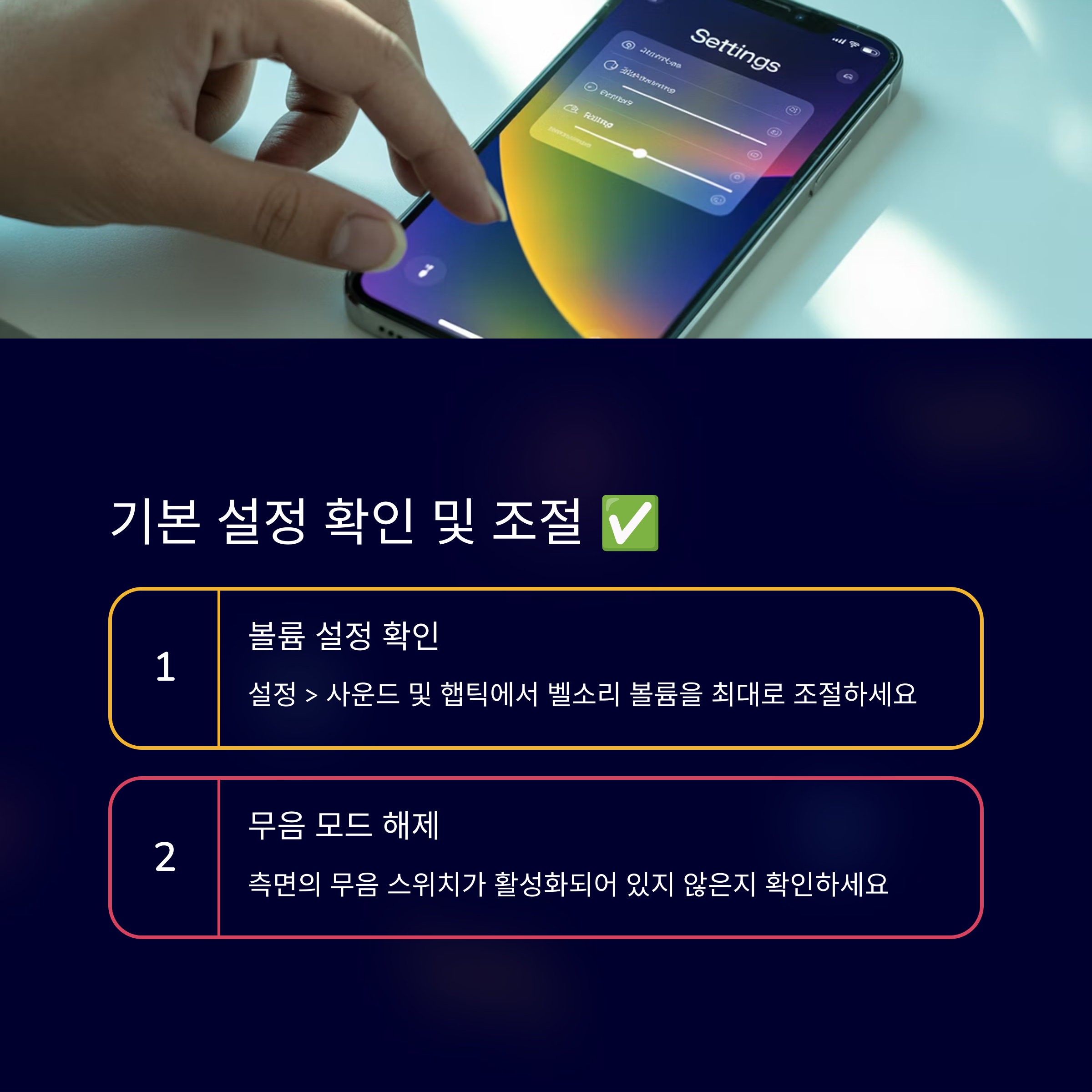 가장 먼저 확인해야 할 부분은 바로 아이폰의 '기본 설정'이에요. 대부분의 알람 소리 문제는 여기서 해결된답니다. 🔊