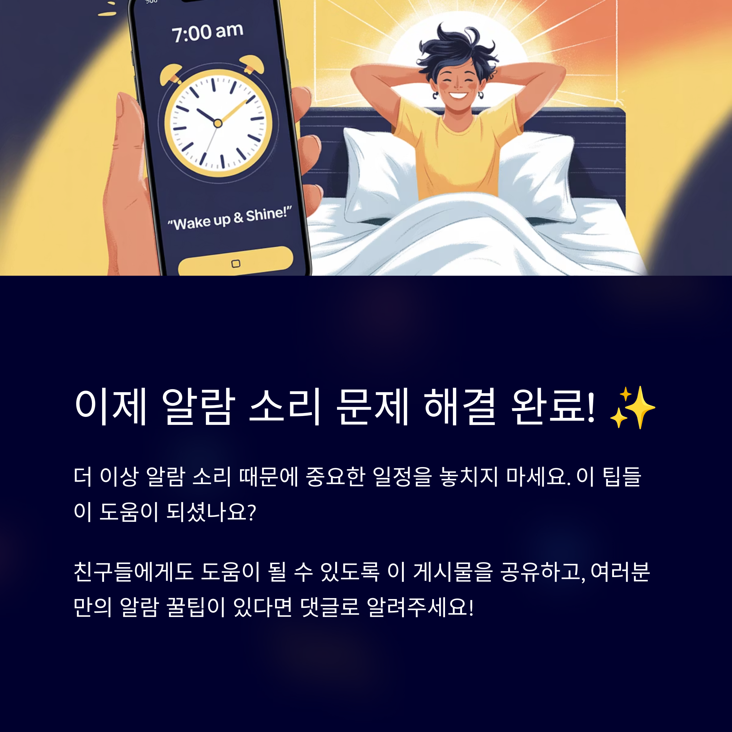 알람 소리 문제를 해결했다면, 이제 앞으로 이런 문제가 발생하지 않도록 알람을 더 스마트하게 설정하고 관리하는 꿀팁을 알려드릴게요. 🔔