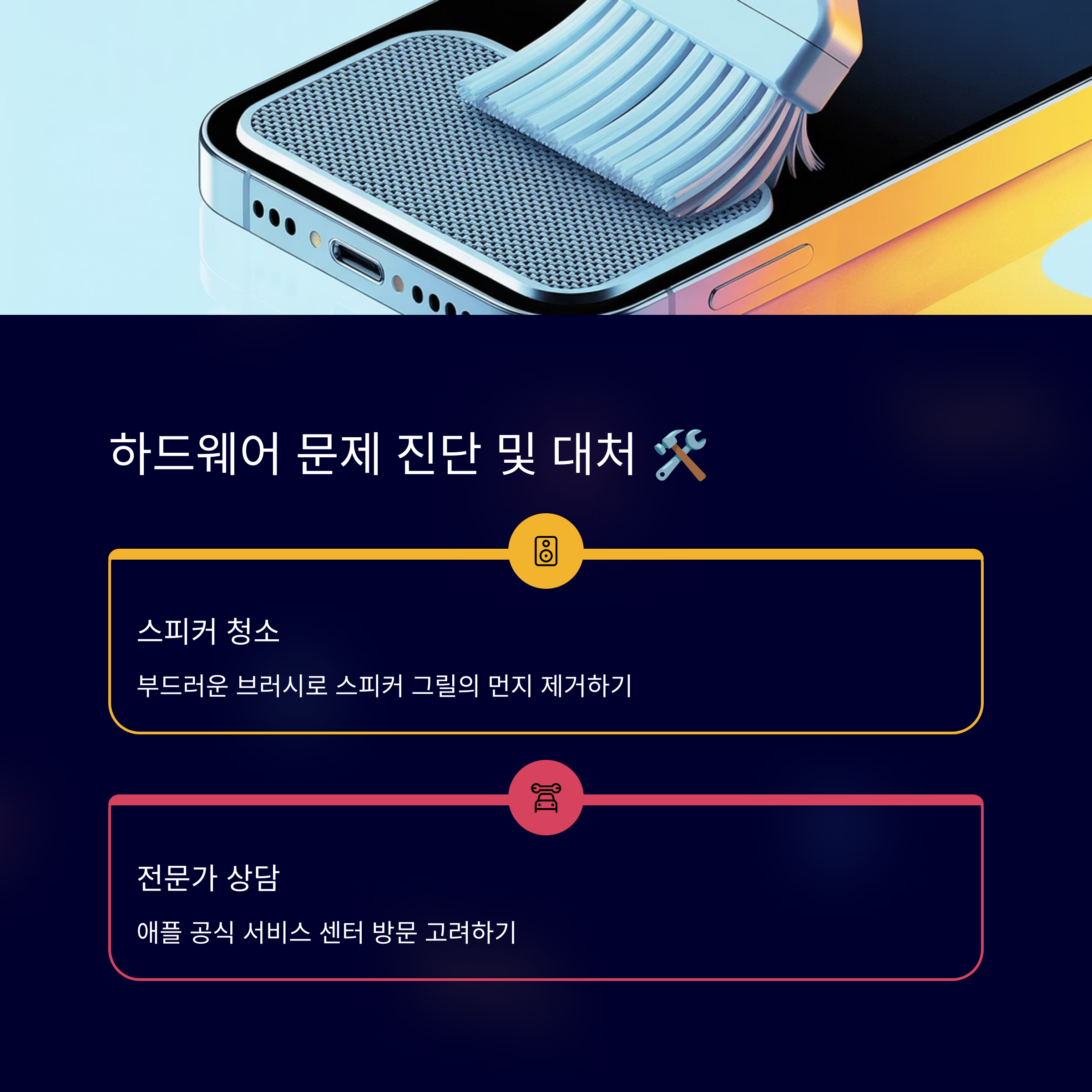 위에 제시된 모든 소프트웨어적 해결 방법을 시도했는데도 알람 소리 문제가 지속된다면, 아이폰의 하드웨어(특히 스피커)에 문제가 생겼을 가능성이 있어요. 🛠️