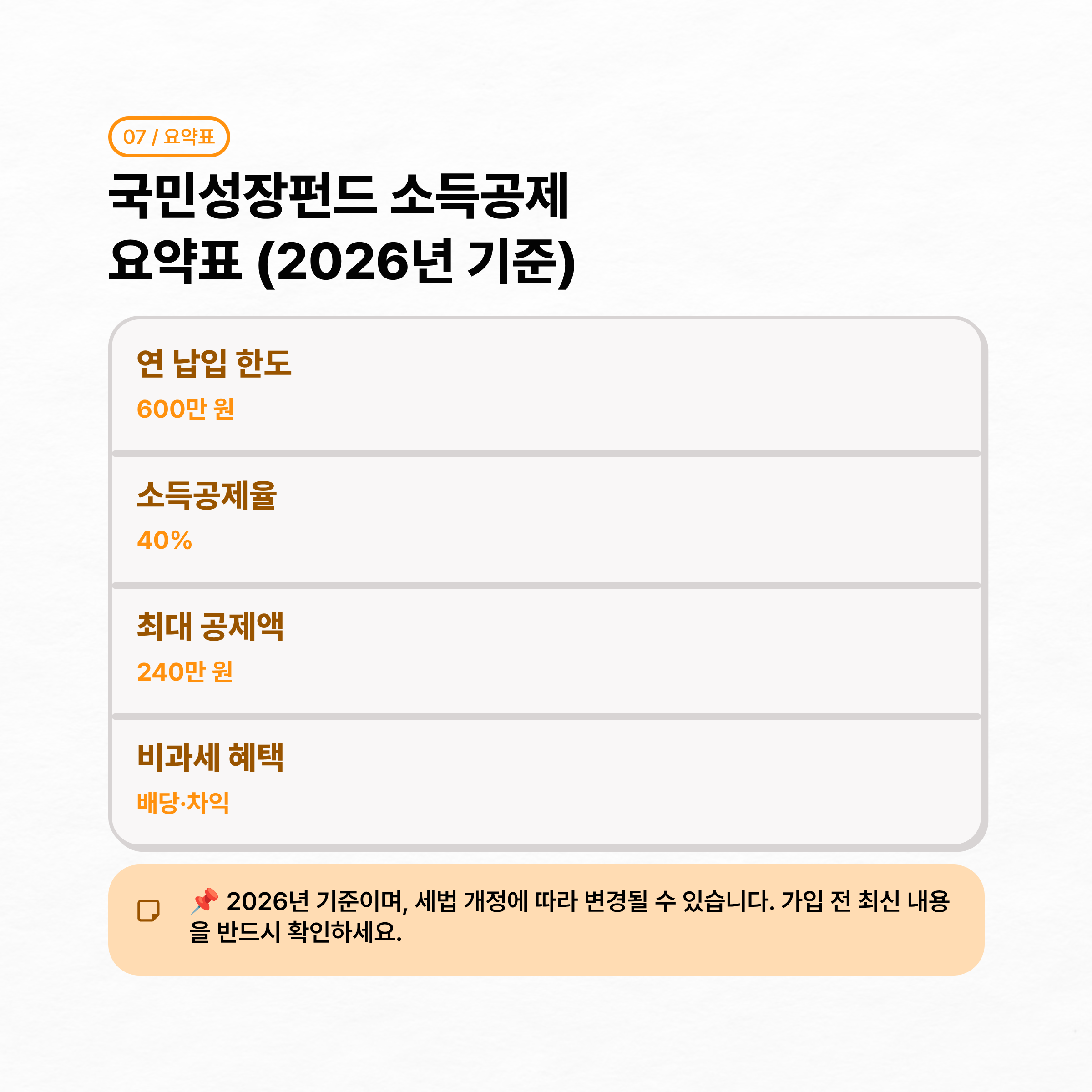 국민성장펀드 소득공제 요약표 (2026년 기준)