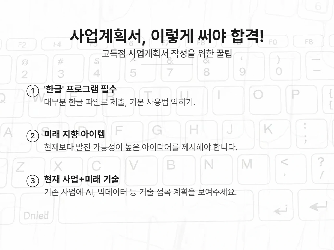 하지만 몇 가지 핵심만 기억하면 결코 어렵지 않습니다. 제가 경험을 통해 얻은 선정률을 높이는 사업계획서 작성 비법을 공유해 드릴게요.
