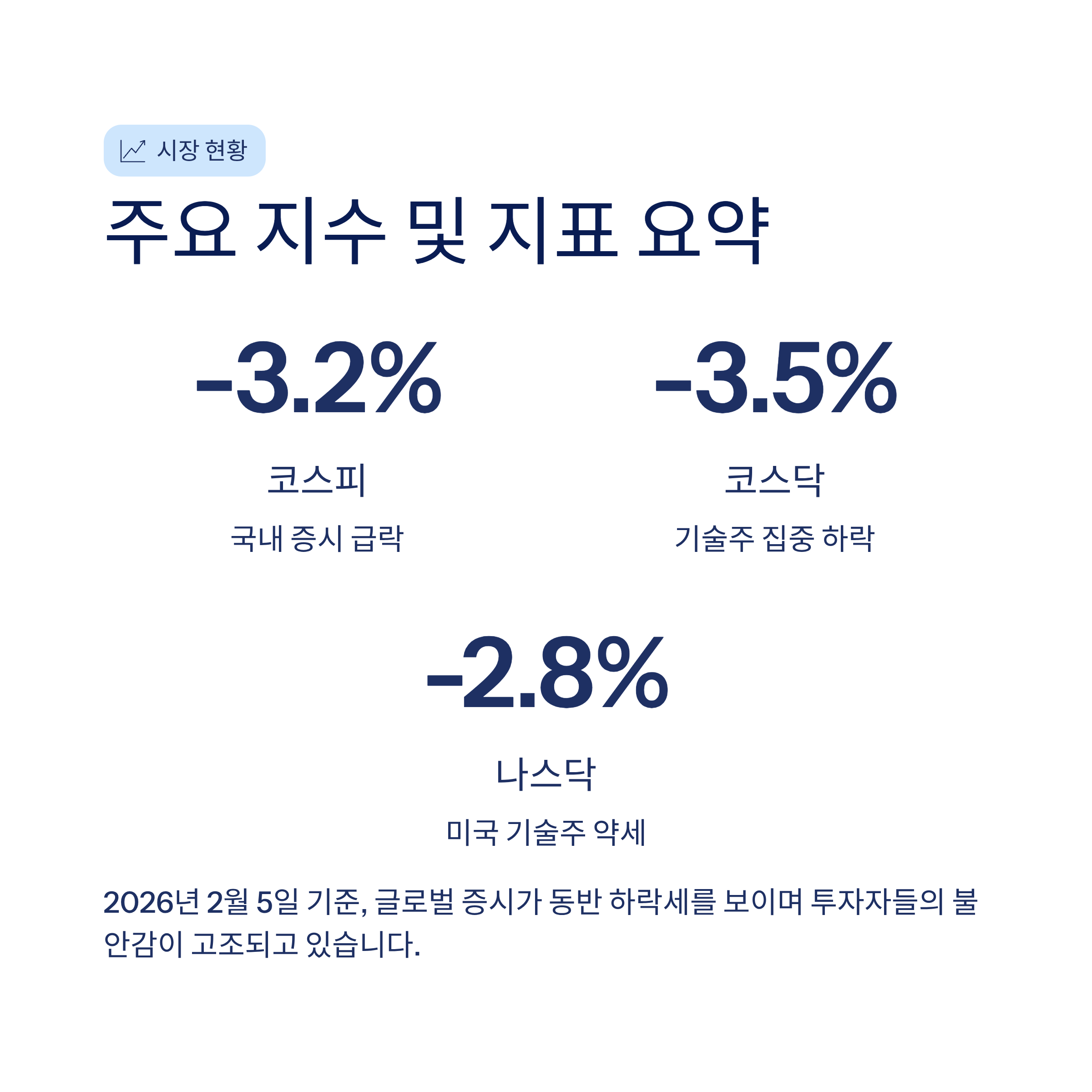 🔒 본 콘텐츠는 2026년 2월 5일 제공된 지수 동향 이미지를 바탕으로 작성된 분석 리포트입니다. 모든 투자 판단과 책임은 투자자 본인에게 있으며, 위 내용은 참고용으로만 활용하시기 바랍니다.