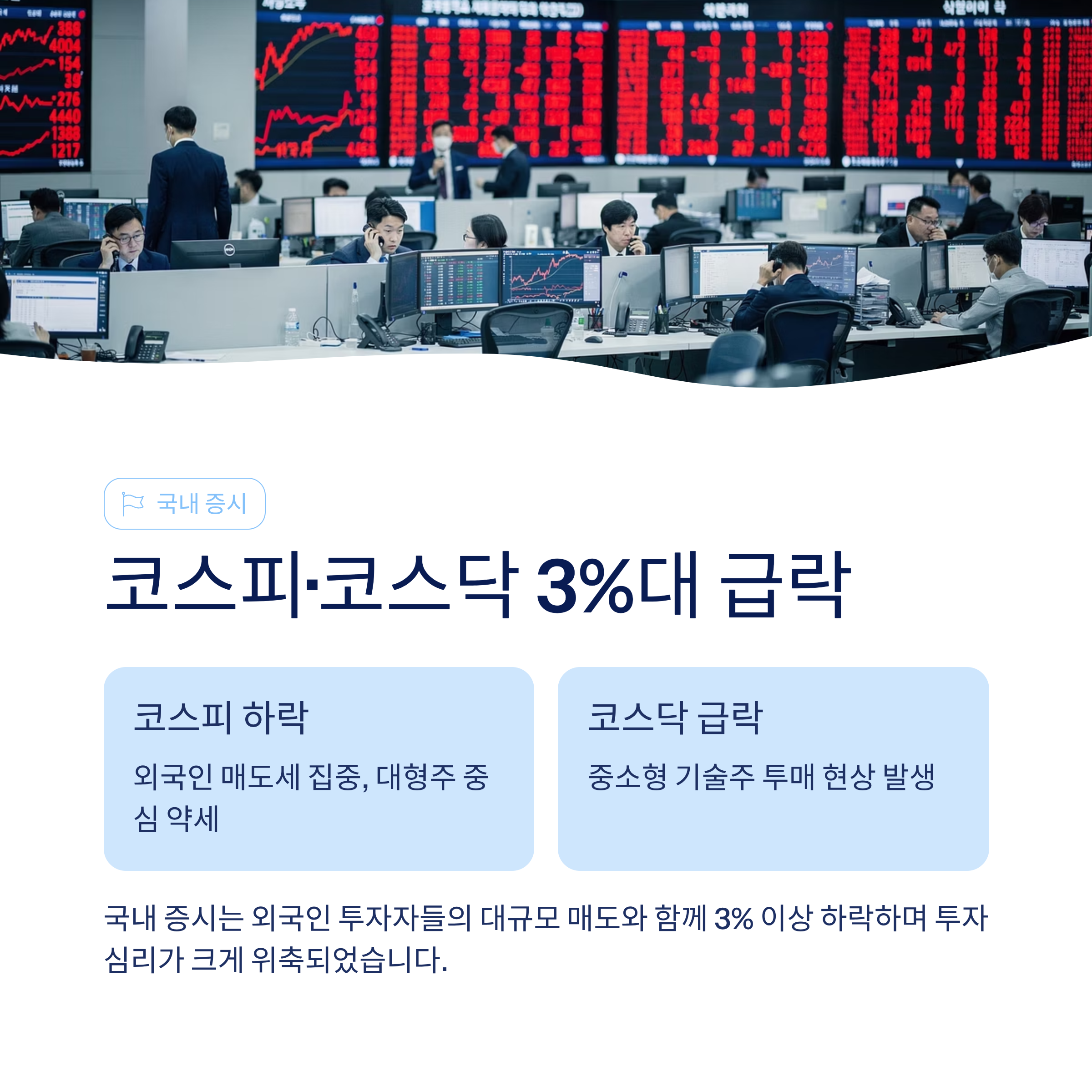 코스피·코스닥 3%대 동반 급락! 외인·기관 7조 원 순매도.