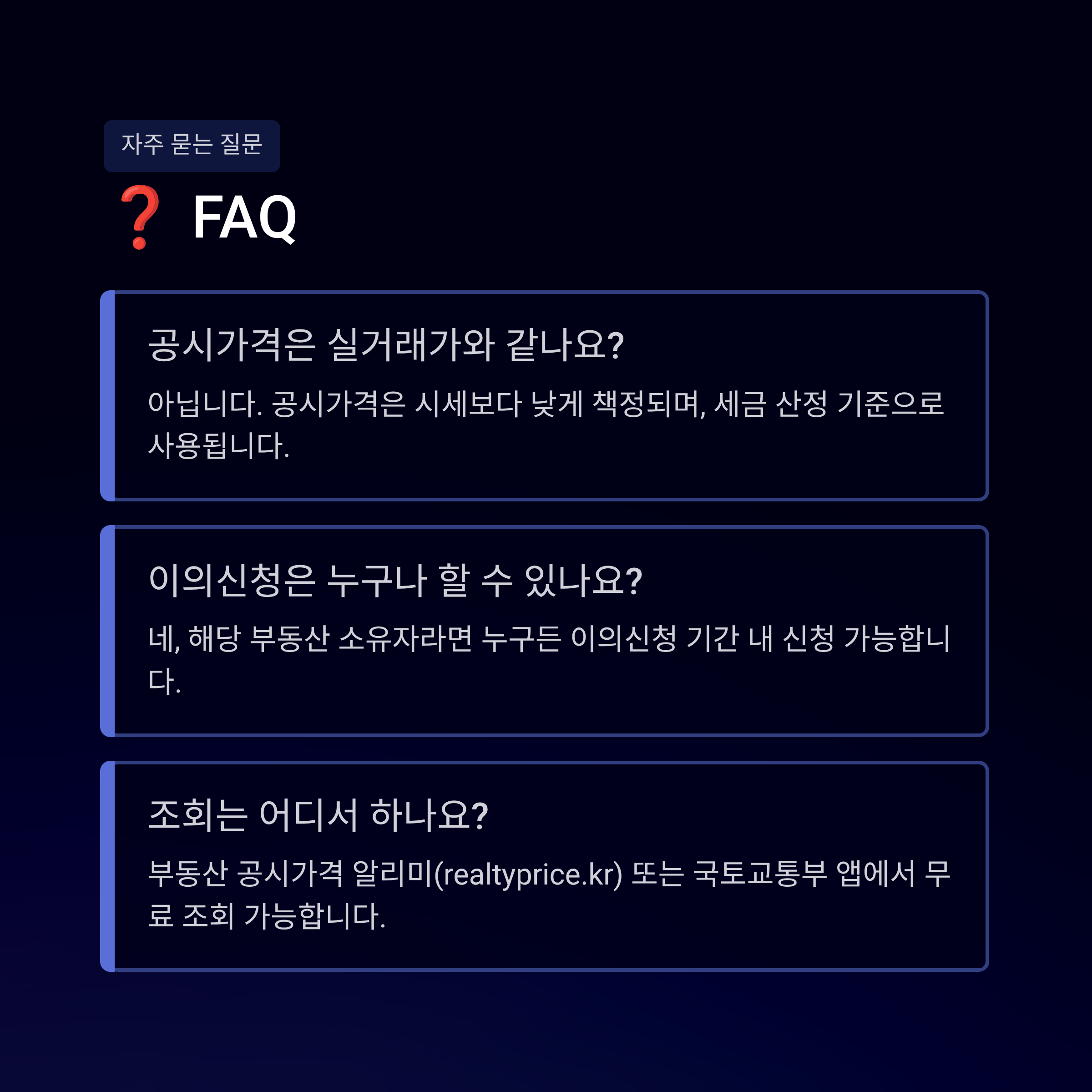 - 법적 효력: 이곳에서 공시된 가격이 공식적인 과세 지표가 됩니다.