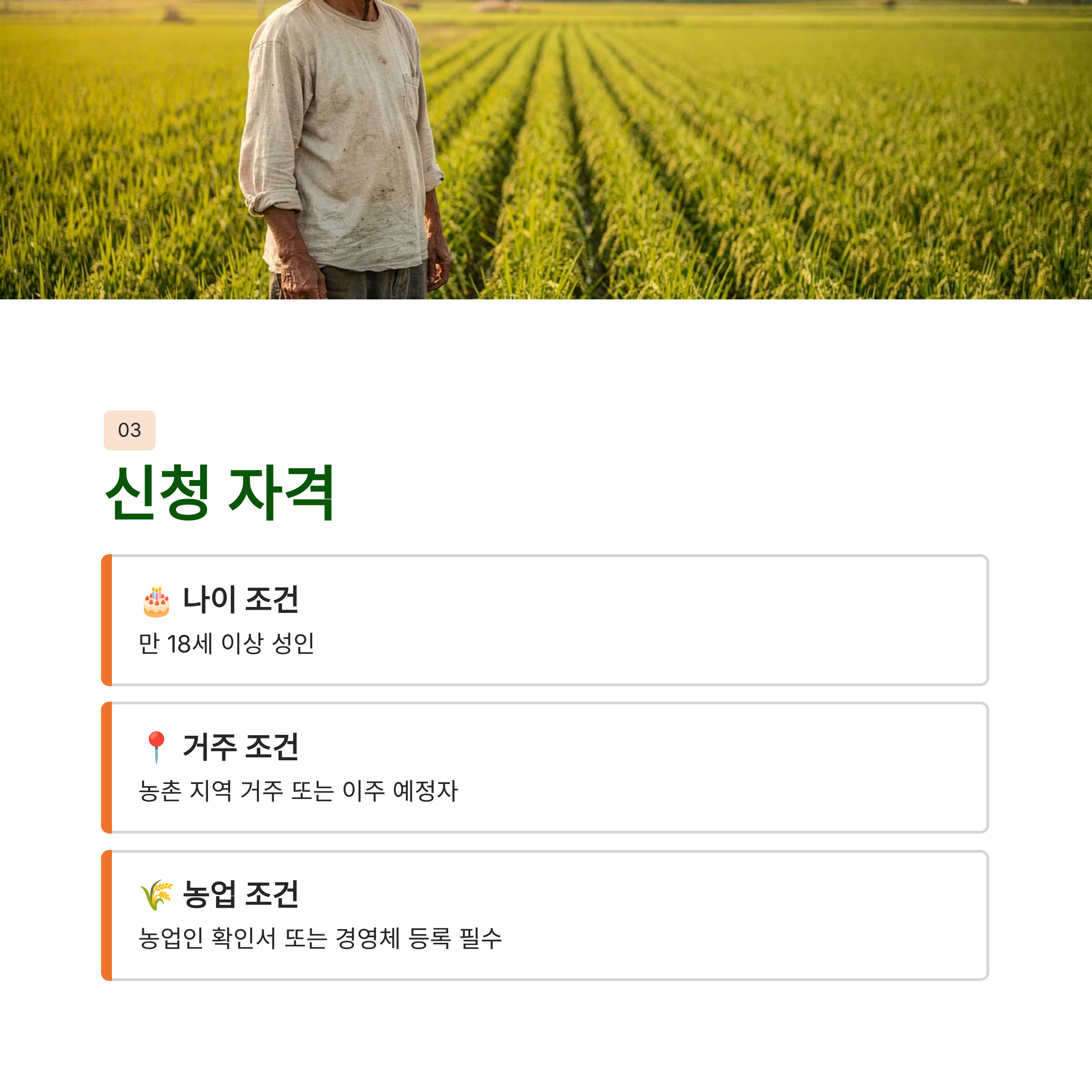 - 📌 농촌에 실제 거주하면서 농업에 종사하거나 종사 예정인 자