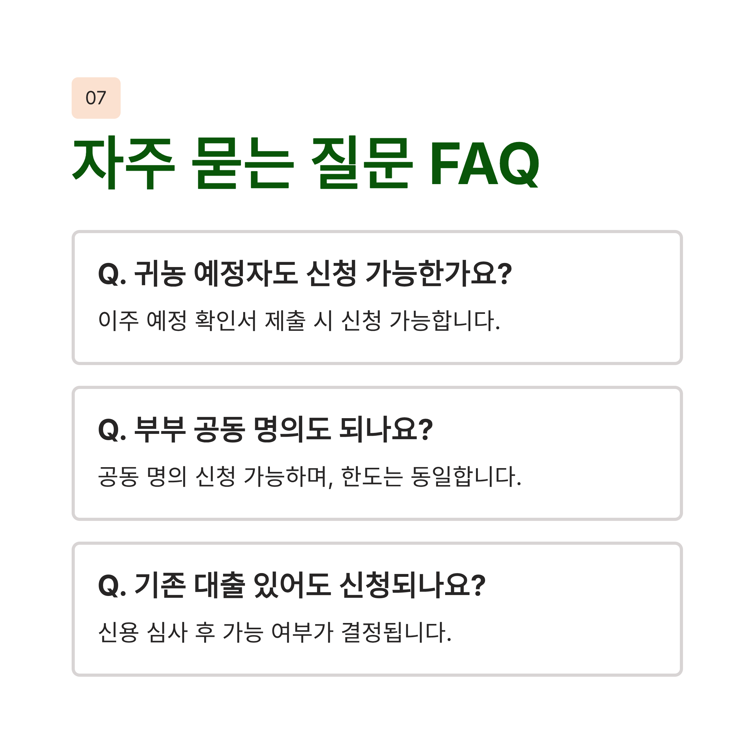 - 대출 기간 중 농촌 이탈·농업 미종사 확인 시 대출금 즉시 상환 요구 가능