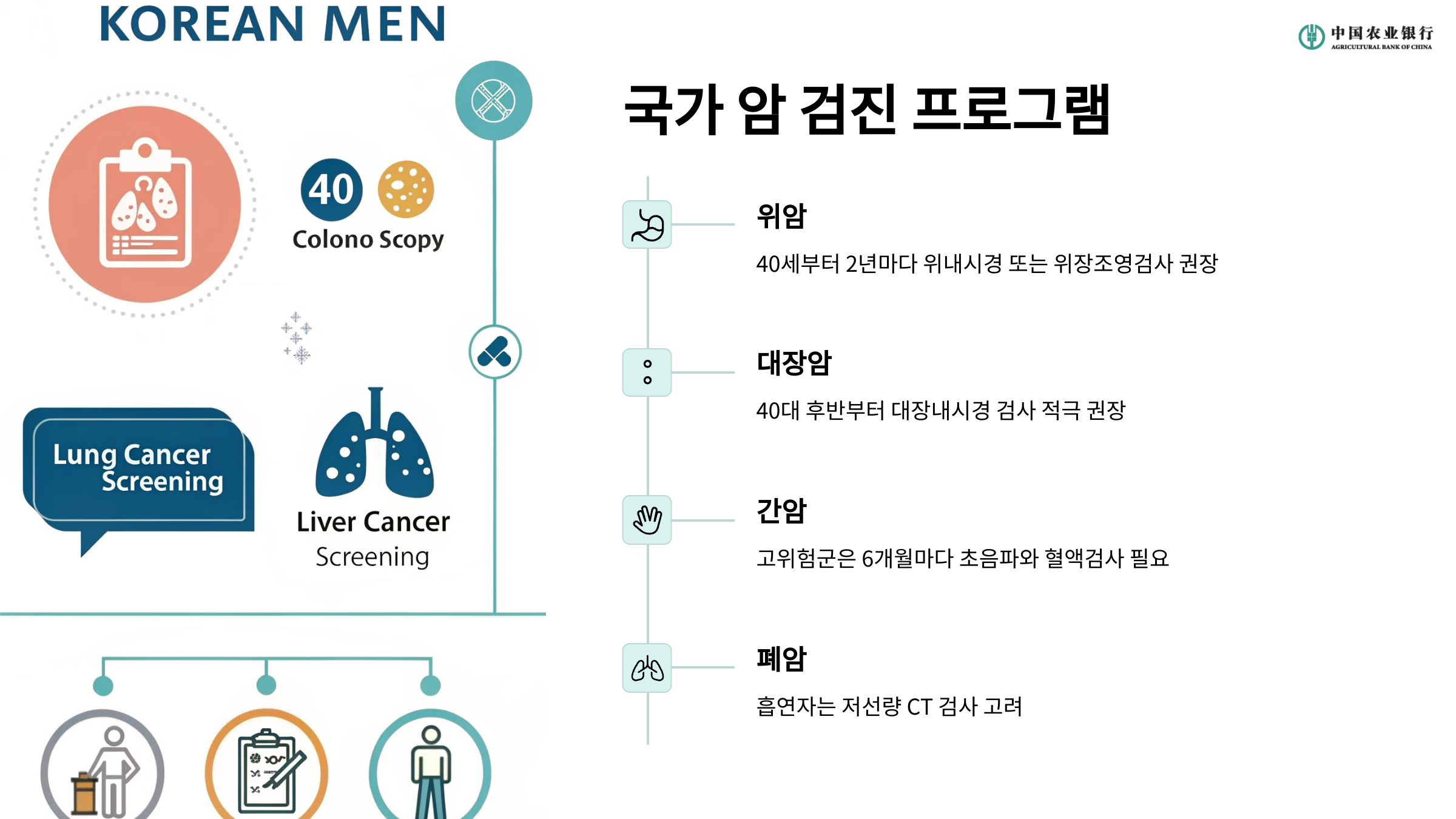- 암 검진은 국가에서 제공하는 혜택을 최대한 이용하세요.