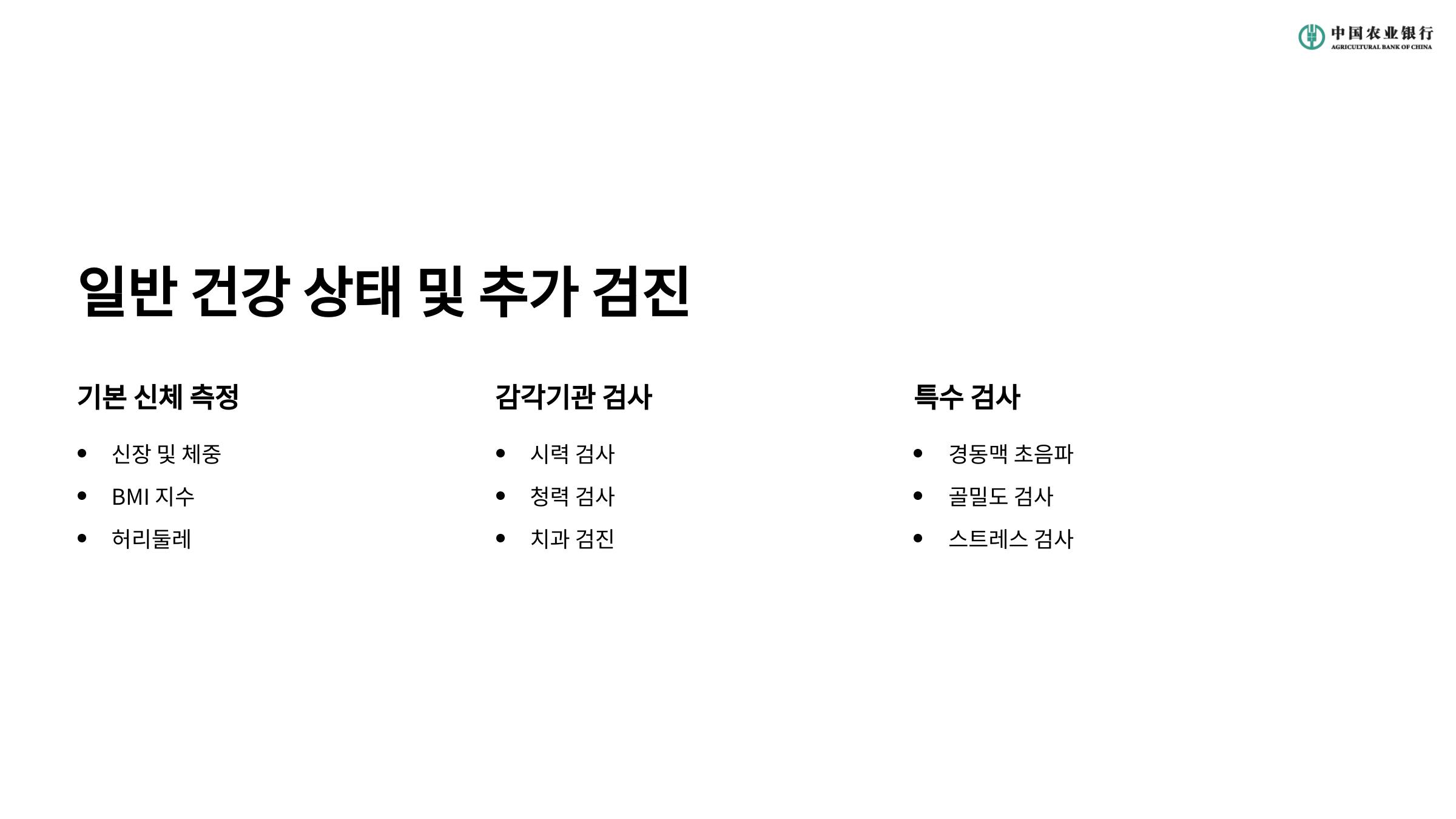 | 검사 항목 | 추천 주기 | 예상 비용 | 특별 참고 |