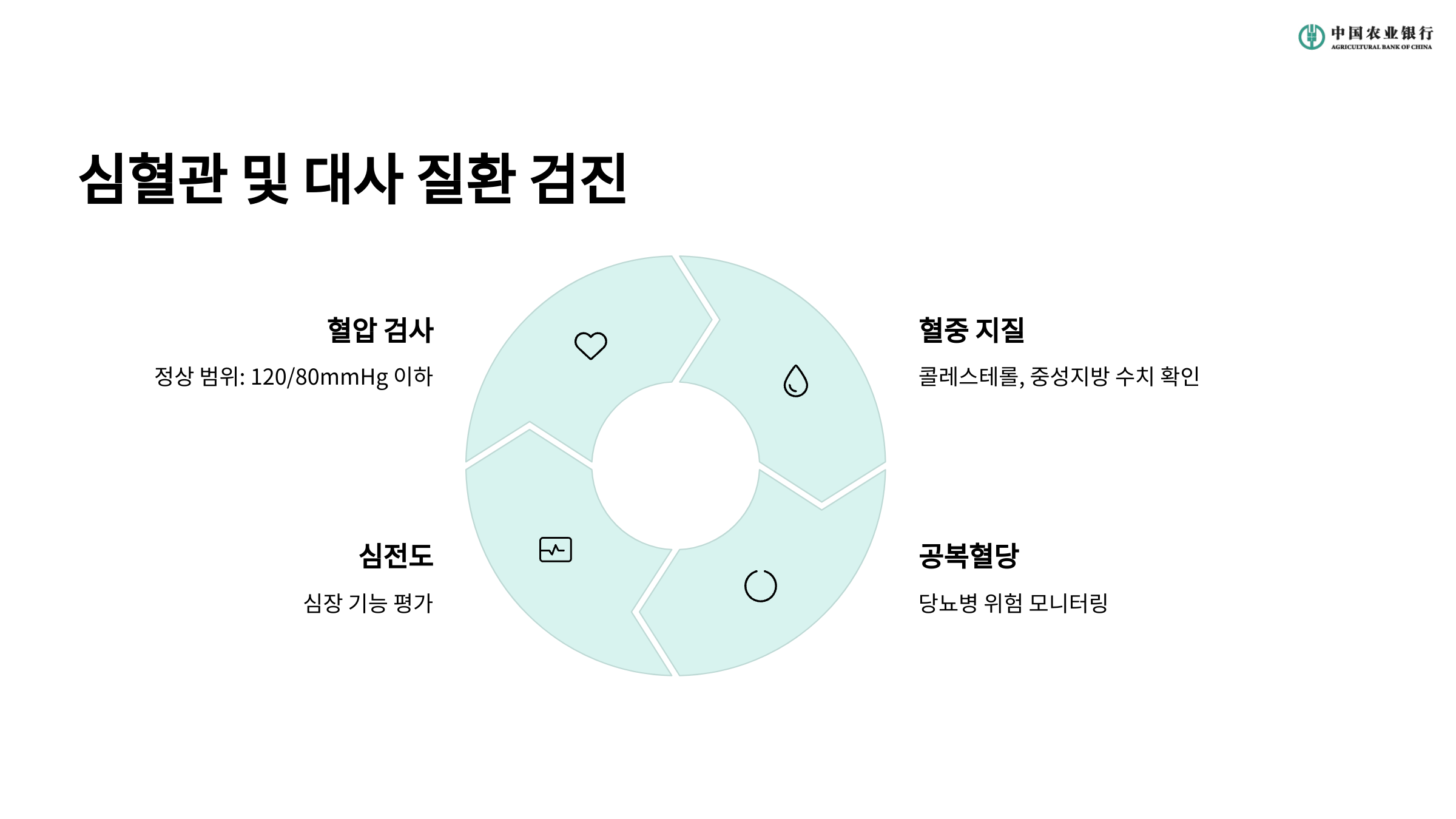 - 혈압 및 심혈관 검사는 매년 필수로 진행해야 합니다.