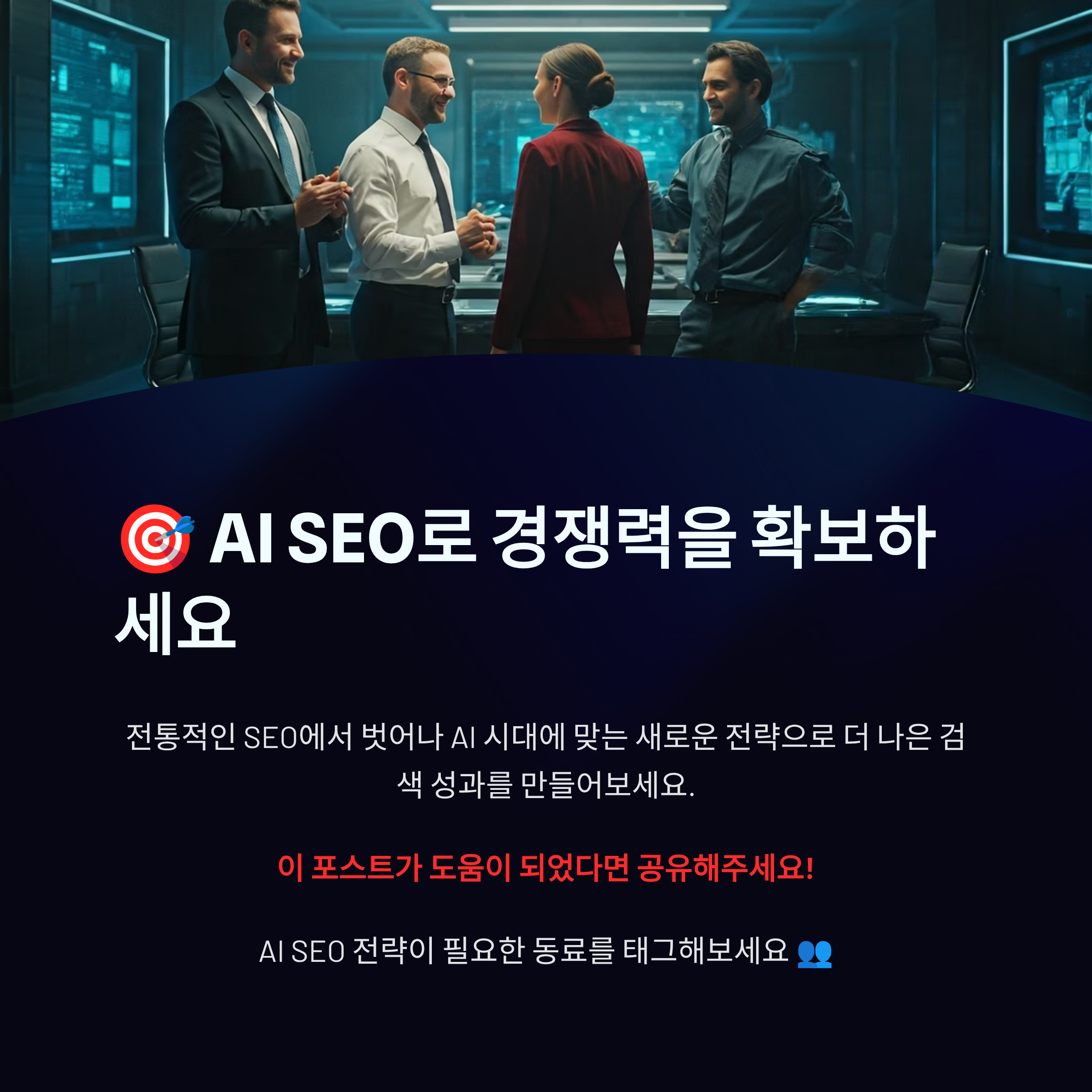 | 기술적 SEO | 구조화된 데이터(Schema) 활용, 모바일 최적화, 빠른 로딩 | AI의 콘텐츠 이해도 증진, 리치 스니펫 등 노출 기회 확대 |