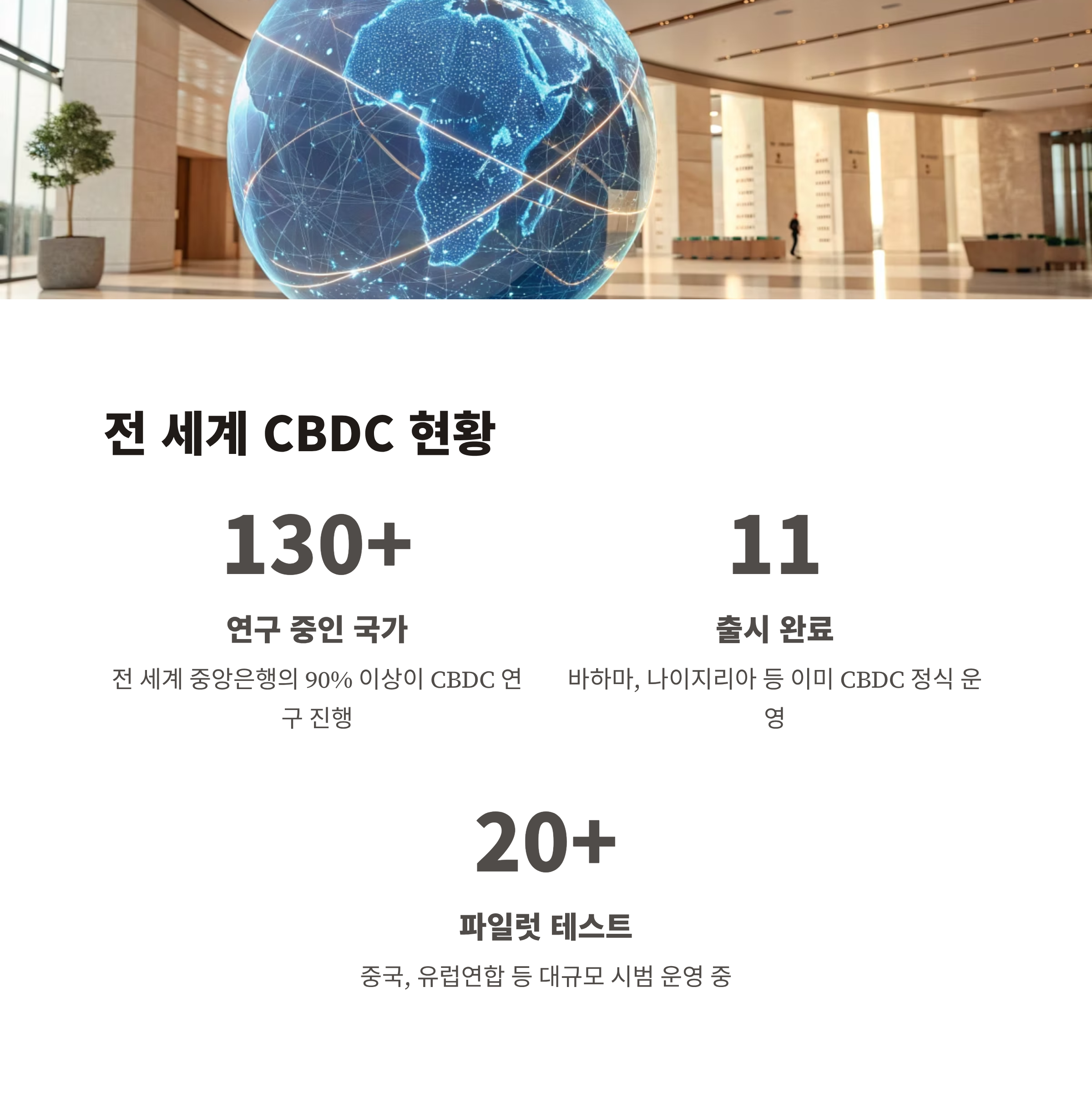 지금 이 순간에도 전 세계 중앙은행들은 디지털화폐 개발에 열을 올리고 있어요. 2025년 현재, 무려 130개국 이상이 CBDC를 연구 중이며, 그 중 약 30여 개 국가는 이미 시범 발행 단계에 들어갔어요.