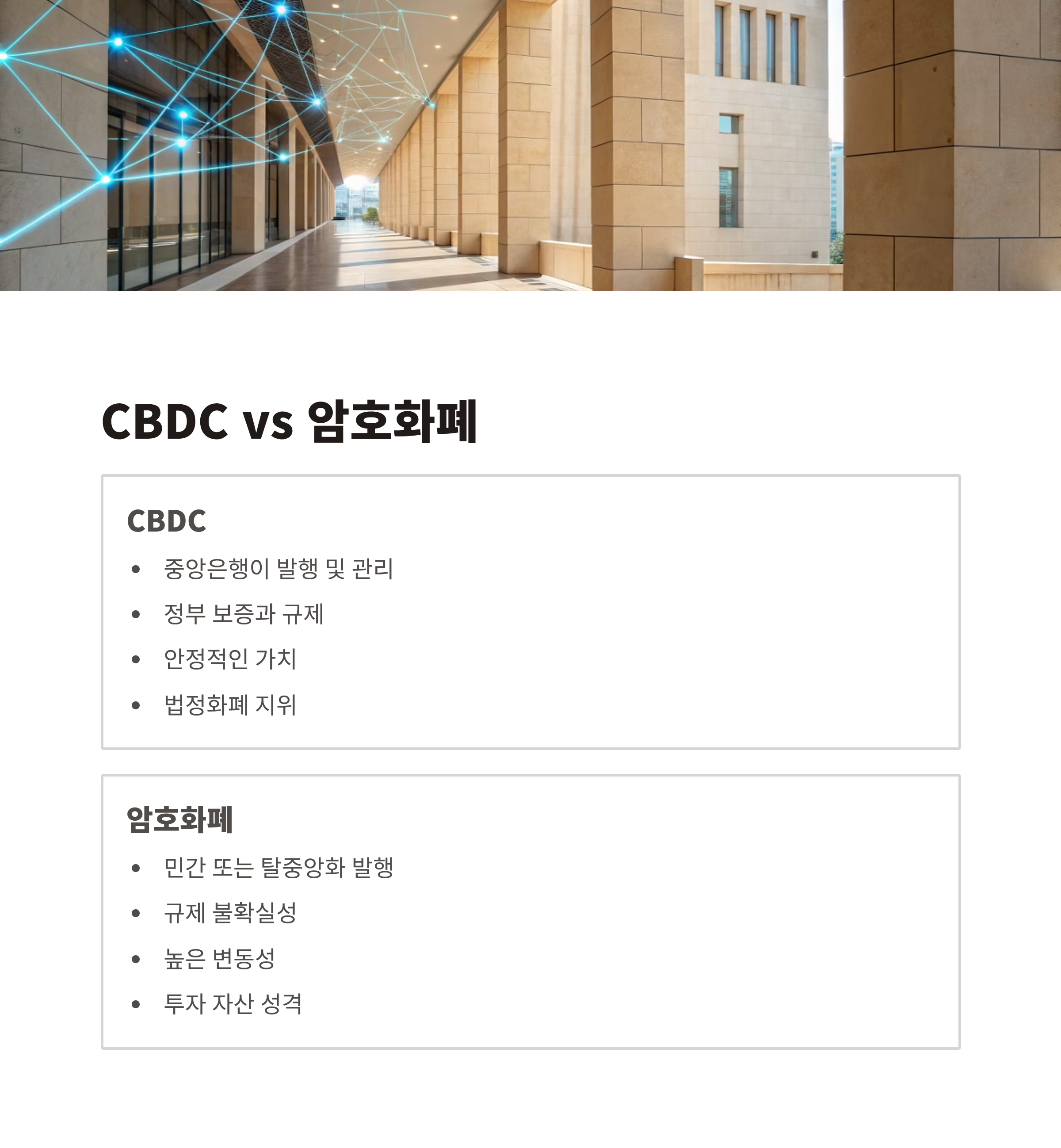 | 항목 | CBDC | 암호화폐 |