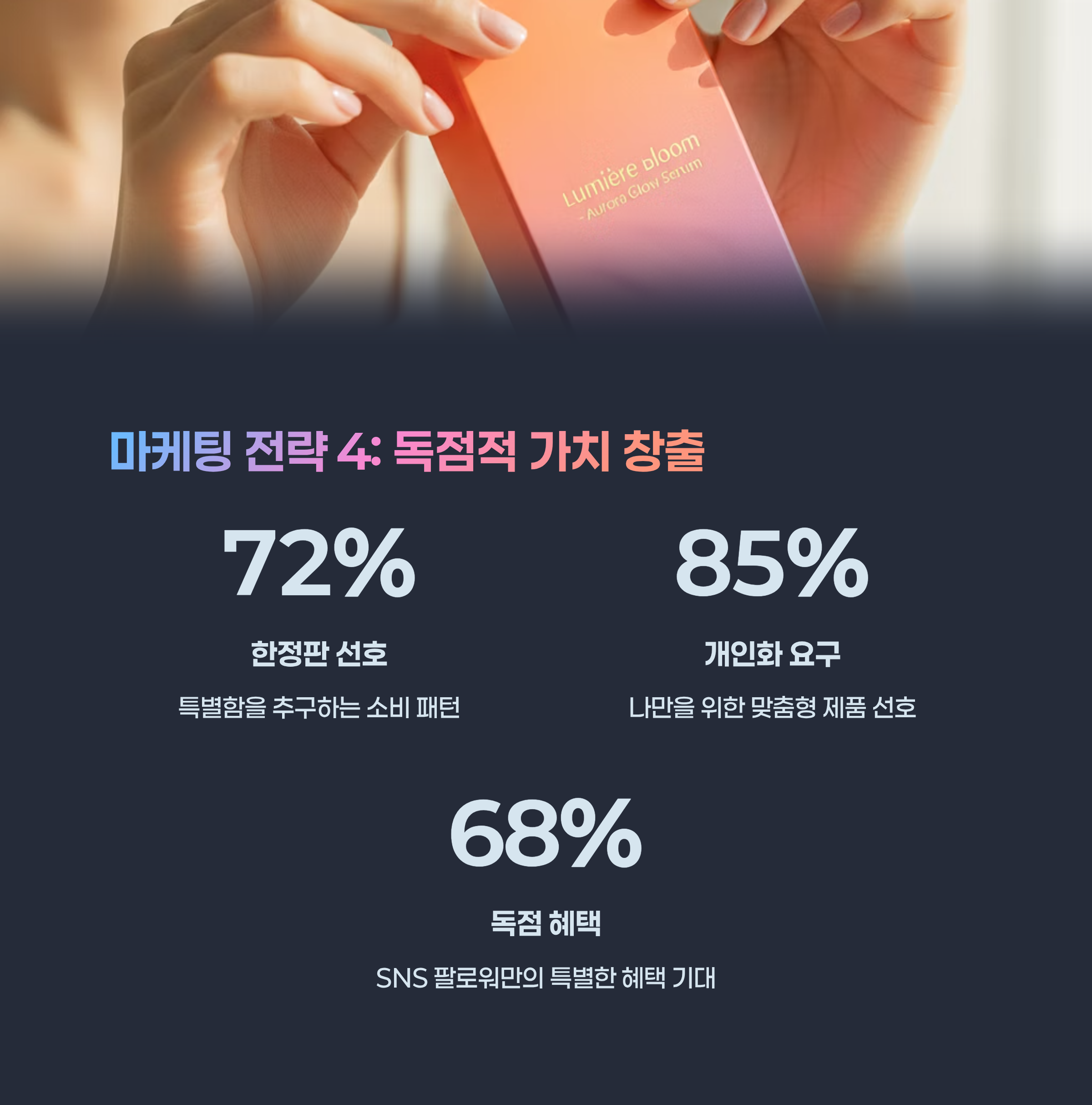 - 희소성 마케팅: '한정 수량', '기간 한정', '오직 SNS 마켓에서만' 등 희소성을 강조하여 구매 욕구를 자극합니다.